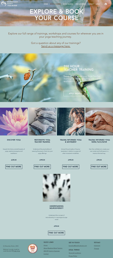 Most of Barefoot Body Training’s courses needed to be bookable online - except the 200HR Teacher Training, which is by application.